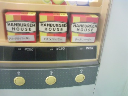 サトーさんからの情報です。ありがとうございます。 ハンバーガー自販機おくります。 またしてもハンバーガーハウスです。 もちろん稼動中です。 ブックスきのやにも、桜川書店にもなかった タルタルがあるのが特徴的です。 値段もちょい高め。 機体は嵐山ドライブインと同じのホシザキです。 青森まで行けば免許センターにもバーガー自販機が残っているんだねぇ。 ちょっと高めだけどタルタルバーガーは旨そうだ。 このタイプのバーガー自販機は昔嵐山ドライブインにあったね、今はオートパーラーシオヤと・・あとどこにあったっけ?おじさんタイプの自販機より新しいのになぜか現存してるのは少ない、あまり売れなかったのかもしれないね。 | ||