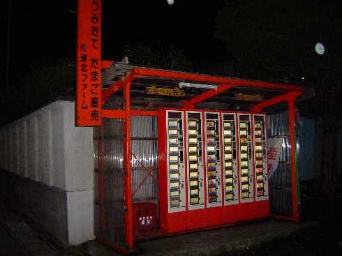 卵の自販機で千円札が使える最新タイプ!これなら余計なジュースとなど飼わなくて済むね。