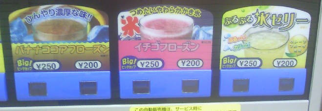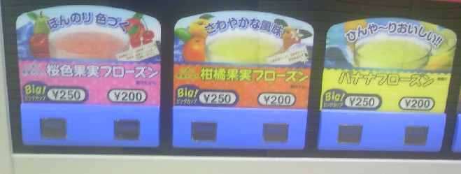 フローズンドリンクの自販機、フローズンがどんどん充実している。