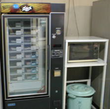 これを隣の電子レンジで温めて食べる。中にはカルビ丼とか五目チャーハンとかあって、本当においしそう。