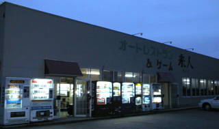 けっこう寂しい国道249号線沿いにある自販機コーナー。中には、回転式自販機や冷凍食品の入った自販機など、