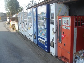 残念ながら、使用不可能。 販売中の紙も剥がされており、電気も入っていない。 フロンガスが切れてしまったんだろうか。 2012.10.29 nom確認 ウシ君さんからの情報です。ありがとうございます。 菖蒲町にて稼動瓶コーラ自販機見つけましたので 画像送ります、すでにご存知でしたらスミマセン。 市街地北よりの岡安商店?店頭にて。 そのアップです、画像が寝ていて申し訳ありません。 ジンジャエールとコーラが交互に入っています。 実際に買えたので、本当に稼動機でした。 2007年12月にひかるんさんと見てきました。県道からは一本奥に入った道沿いにあるので分かりづらいです。 県道12号沿いミニストップの裏あたり。県道12号の一本裏道にあります。国道122号から来た場合は、神南交差点を久喜方面に500mくらい行くとあります。 12月16日の深夜と12月22日の昼間に行きましたが、稼動中でした。かなり狭い道で自販機のある場所はすれ違い不可です。深夜は自販機近くの少し広い道の道路脇に止めてしまいましたが、昼間に同じ場所に止めようとしたら、「駐車場に停めてある車が出せない!移動しなさい!」と店主に怒られました。そこの自販機でコーラ買うだけだと言っても無駄でした。。クラクション鳴らしてくれればすぐ移動するのに・・・自販機は素晴らしいですが店主はあまり感じ良くないなぁ。 2008.1.2 |