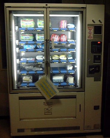 市内の病院に入りましたら自販機を発見しました。着物、タオル、オムツなど入っていました。