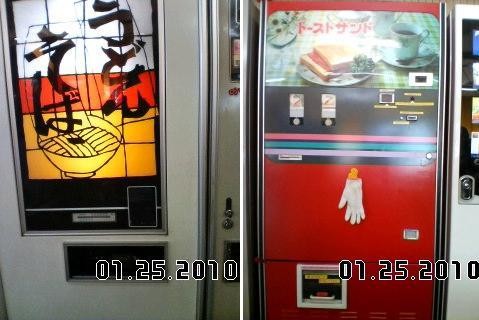 中には うどん・ラーメンの自販機 トースト(親切に手袋があります)の自販機があります。