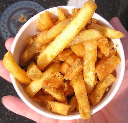 持ち帰り用に袋まで用意されてるけど、やっぱ揚げたてがうまい。
