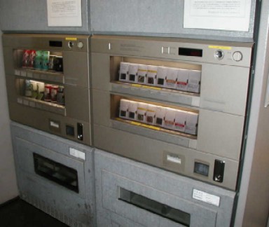 無機的なメタリックデザインですが、隣の飲料自販機とは調和がとれています。