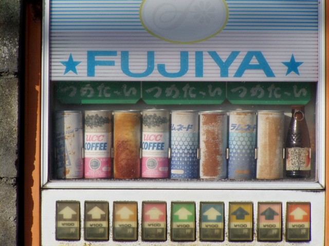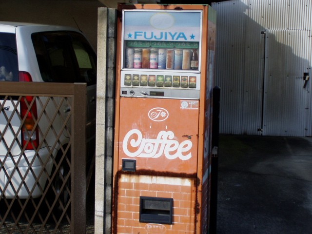 アメリカンではない不二家コーヒーの自販機。なんか甘そ〜なコーヒーじゃグッフォッフォッフォッフォッ!甘党のウニ・バルタン様もコーヒーはブラック派。こんな甘そうなコーヒーは遠慮したいだグッフォッフォッフォッフォッ!でもよく見ると不二家のコーヒーなど入っていない。それでもサンガリアの廉価ケース売りなんぞを入れずに突っ張ってきたんだろうが、トウの昔に朽ち果ててしまっていた。