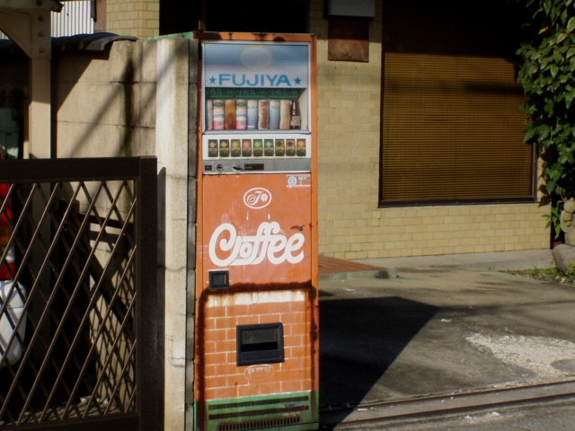 レンガ造りっぽく周りの景色に合わせた感じの不二家の自販機。不二家が今こんなことになってるとは、この頃は考えられなかっただろうな。