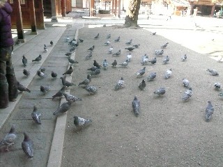 神社の敷地内にはハトさんが大量にうろついています、それがポップコーンを買うと・・・ |