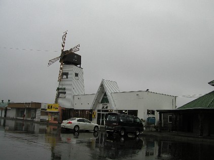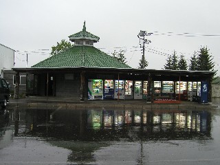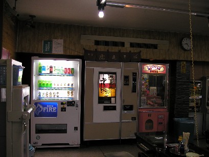 自販機構成ですが、トイレのある建物の外側に、清涼飲料水とタバコ、そして、オランダ風車のある建物の中にラーメンとそばの自販機があります。