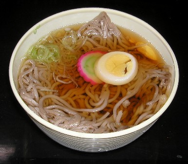 そばのほうは小エビ入りの天ぷら、ねぎ、なると、薄切りのゆで卵となっております。