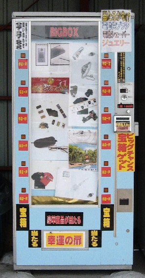 宝箱が当たる、グッズ自動販売機。宝箱と言っても電動歯ブラシとか電動シェーバーなんてそんなに高くないものだし、