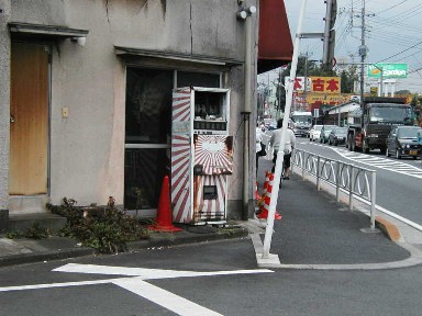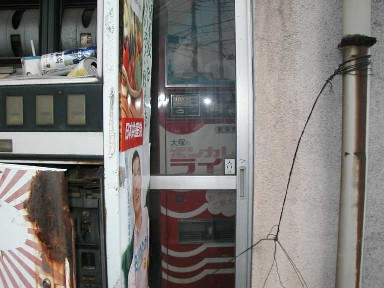 日野市、日野橋駐在所前交差点の前にある民家?か倉庫か?の中にボンカレー自販機がある。