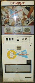 スパゲティやうどんの自販機。固形燃料が入って引っ張ると温めてくれる。 だが、残念ながら生き残っている台はないはず。群馬県内で5台ほど見つけたが、 どの台も試しに10円玉を入れたらそのまま戻ってきてしまった。 後継機として、以前紹介した
