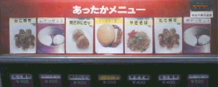 待つこと90秒。熱くて取り出せない程のおやつセットの箱が落ちてきた。中には肉まんが2個。肉まん2個で400円じゃ高いなぁと思いながらも、自販機にしては上出来の味だと納得。