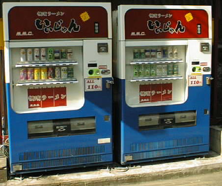 ここはラーメン屋(いいじゃんという名前か?)と提携して、オリジナルの自販機を使っている。