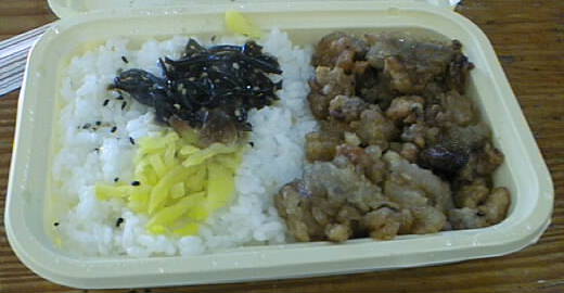 これはから揚げ弁当。想像とはかけ離れた物が出てきてしまったという感じ。