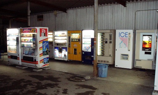 回転式自販機、氷、うどん、H系自販機などあるカラオケボックスもあったようだが