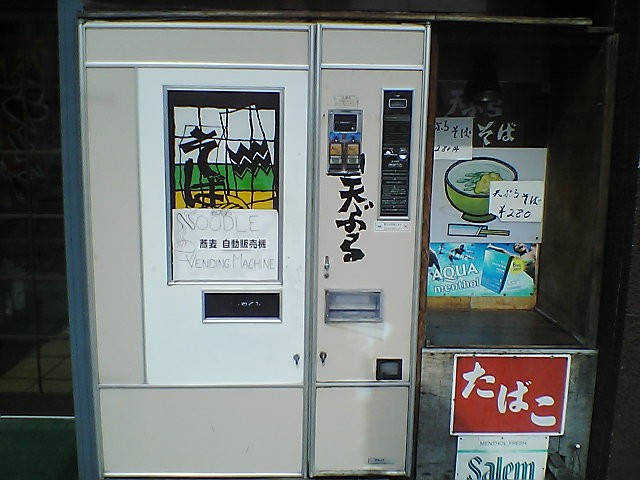 そういえば以前テレビで倶知安にそば屋の前にそばの自販機があるって放送されていたけど、ここのことだな。 これはなかなかうまそうなそばだ、そば屋が作ってるんだからウマいんだろうな。 海老や天ぷら(天かすじゃなくて)という具もいいね、1日40食売れるのも納得。 ところで食べる時はどこで食べるんだろ?店の中で食べていいのかな。