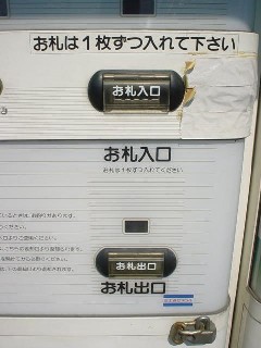 目下、稼働中で(ちゃんとお札をいれました)お札の投入口とおつりの返却口が別々にある大変変わった代物です。