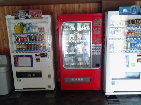はにわさんからの情報です。ありがとうございます。 場所は熊谷市星川1丁目です。駅近くの繁華街で風俗店やキャバクラが多い場所です。 まだできてそれほど経っていないようですが、外観もぼろぼろで中は暗くてメチャメチャ怪しいです 何より中の様子が全く分かりません。採光窓は建物中央の低い位置にあるガラスだけで 建物の入り口はまるで洞窟のような感じです。空調も効いておらず蒸し暑く空気も悪くトイレもありません 中にあるのはジュースとパンとグッズの自販機でした。真ん中の赤い自販機がグッズの自販機で この自販機だけレトロなかなり古いモデルです。 店の外には「ちょっとひといき・パンコーヒーでも」と書いてありますが一息つけるかどうか? これは面白い!なぜビルの1階だけがこんなにボロい感じなのか、不思議な自販機コーナーだ。 いったいどんな人達がここで一息つくのだろう。一息ついたついでに赤い自販機で・・・ ひょっとして、ドリンクやパンよりもこっちがメインなのかな。 |