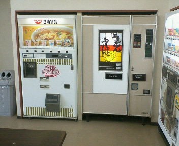滋賀県の小林さんからの情報です。ありがとうございます。 場所は倉敷市にある水島緑地福田公園の裏になります。 建物は1階が美容院・写真館・自販機コーナー、2階がアパートになっているようで、かなりの小スペースです。 中には「うどん・そば」、カップ麺、お菓子類、ジュース類の自販機とちょっとしたゲームが置いてありました。 「うどん・そば」自販機のメニューは、天ぷらうどんとラーメンでした。天ぷらうどんの味は、まずまずと思います。 自販機コーナーなのに、美容院やアパートと一体型になっているのは珍しい、車庫とか倉庫に使うつもりだったスペースを自販機コーナーとして利用してるっぽいな。 2009.1.24 |