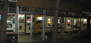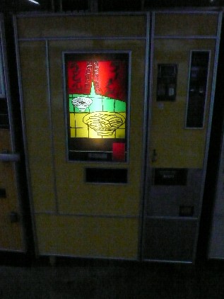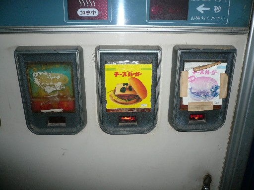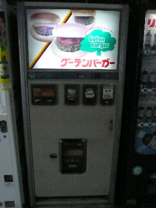 ハンバーガー自販機は売り切れが目立つ。肉厚で美味しいと評判の!?特製バーガーも売り切れ。 |
