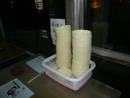 でも、そばうどんの容器はこんなにたくさん、ざっと50杯くらい。今日だけでこんなに売れたのかな。 |