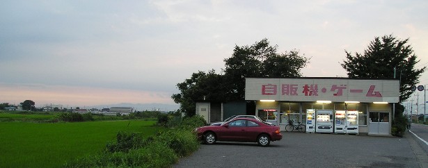 国道50号より少し北にある自販機コーナー。何とも安易なネーミングだろう。「自販機・ゲーム」は店の名前じゃなくて案内かも。