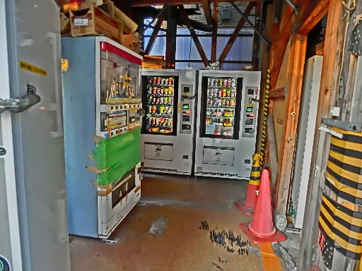 おくには乱雑に商品が詰められた新型自販機に、