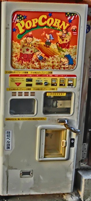 ポップコーンの自販機が珍しいが、久々に行ったら他の自販機も面白いので、