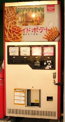 以前群馬県の自販機コーナーで見たフライドポテト自販機がこんなところにあるとは。 残念ながら使用不可能。使用可能時の詳しい解説は、