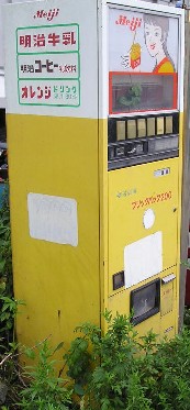 秩父ローラーの時見つけた自販機。国道140号から皆野駅方面に行くとすぐある。 サンプルは古くなっちゃってまっ茶色、何が売ってたかさっぱり分からない。 当時は70円で売っていたようだ。サンプルの中から雑草が生えている。どこから栄養を取っているのか?たくましい雑草だ。