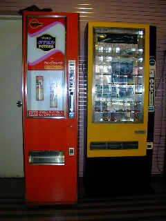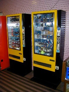 おもちゃの自販機は結構新しそう。景品には時計なども見えるのだが、本当に出てくるのだろうか。