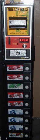 気分屋さんからの情報です。ありがとうございました。 12月にニューヨークへ行ってきたのですが、ホテルにあったジュースの販売機を撮ってきたので送ります。 コカコーラのペットボトル販売機なのですが、コカコーラをはじめスプライト、ダイエットコーク ミネラルウォーター、レモンティー?がありました。価格は一律1$25¢です。 マンハッタンは外だと自販機が1台も見つかりませんでした。日本と違いますね・・・ さすがアメリカ、自販機もコカコーラの絵もアメリカンサイズ。 金額表示盤のところにCOLAと書いてあるのがしゃれてる。日本のダ○ドーも表示盤にダイ○ーと書いてあるけど もしかしてこれの真似? 2005.4.13 | ||