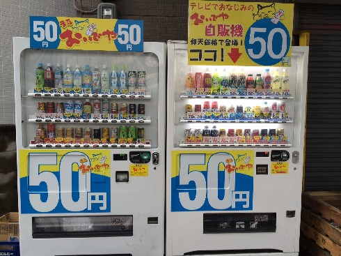 隣には50円の自販機もある。実際は最安のドリンクが50円で、大手メーカーのものだと70円〜80円くらい。 この自販機で面白いドリンクを買ってみたので、The Foodsで紹介しています。