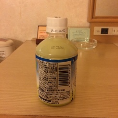 出てきたドリンクはこの通り、これ普通に100円位で売っているやつだよね。しかも賞味期限もまだまだ長い、これを買ったのは2月。隣のピンク自販機から出てきたものも全部これだった。隣のピンク自販機で買っていたおじさんは、以前新聞に載ってた、40本くらい買って近所に配る人だったのかな。