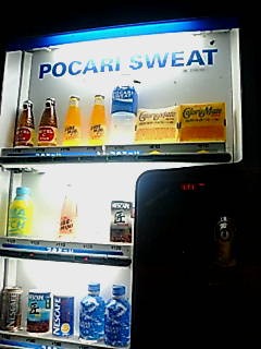 ポカリスエットの自販機の中にカロリーメイト入り。駅などではよく見かけるが、珍しいのはポカリの300mlアルミボトル缶。