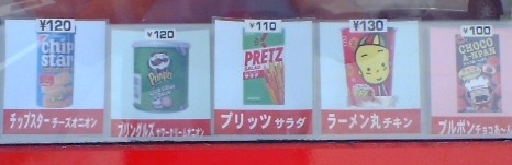 愛知県はPOTATO BOYが多いなぁ。しかしこの価格はなかなか良心的、どれも100円代、この自販機は売れそうだ。
