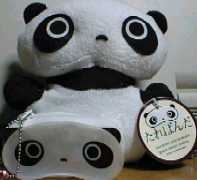 たれぱんだ(ぬいぐるみ・ポーチ) 発見場所:群馬県前橋市のオレンジハット 取得にかかったお金:ぬいぐるみ/300円 ポーチ/200円 グルグル回ってるカプセルを落とすゲームで、ドラえもんのミニルービックキューブを落とそうとしたら、このたれぱんだのポーチが落ちた。 かわいいので、nomも気に入ってしまった。(1000円くらい使って、変な物ばかり落ちてきて、結局ドラえもんは取れなかった) そして別のゲーセンへ行ったら、今度はUFOキャッチャーにたれぱんだのぬいぐるみがあった。300円で取れた。昔UFOキャッチャーはさんざんやったからなぁ。 こういうかわいいぬいぐるみなら、取りたくなる。このたれぱんだ、実は結構人気あるらしい。 妹に一度はあげたんだけど、人気あるというので返してもらった。誰か別の女の子にあげるためにとっておこうっと。 99.1.1 |