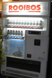 京都駅近くをうろついていた時に見つけた自販機。ルイボスティーってのは初めて見たが、 この自販機は全部ルイボスティー、ホットとコールドの2種類しかない。 しかもホットの方がコールドの倍近くある、6月にもなってホットを飲む奴なんて少ないだろうに。 250ml缶しかないってのも何だかなぁ、JRの駅のジュース自販機じゃないんだからさぁ。