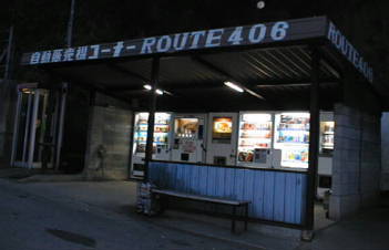 その名の通り国道406号沿いにある自販機コーナー。あるのはハンバーガーの自販機、あとはカップラーメンとジュース。