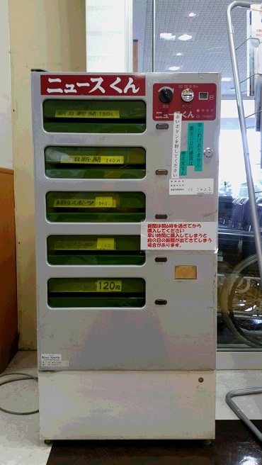 病院内にある新聞自販機です。