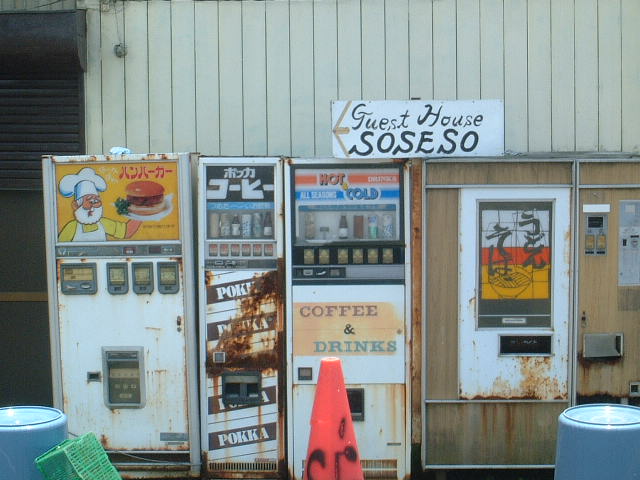 自販機コーナーでもないのに何故こんなんものが!?しかも見た感じまだ使えそうな自販機もある!このバーガー自販機など まだまだバーガーを温めてくれそうだ。この資産を使ってまた自販機コーナーの営業を!