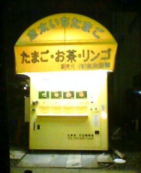 おそらくたまごがメインなんだろう。あと、この自販機の形もめずらしい、遠くから見たら宝くじ売り場に見えるかも。