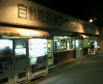 の自販機があり、その自販機にはお菓子類やパン、おにぎり、