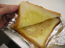 ![]() ![]() ![]() ![]() ツナ&オニオントースト 購入場所:オレンジハット太田店(群馬県太田市) 販売価格:200円 群馬県内のトースト自販機でよく売っているツナ&オニオントースト。少しマスタードも入っている。 初めは合うのかなーと思っていたけど、慣れてしまうと普通に食べられる。 今回買ったのはオレンジハットのトースト自販機、あまり焼き具合が良くないな。最近のトースト自販機はあまり焦げないように調整されているのかな。 昔は真っ黒焦げでアルミまでこげているようなのが出てきたりしたのだが。 2004.4.15 |
