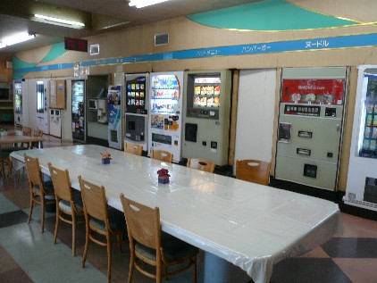 残念ながら、うどんそば、バーガーなどレトロ食品自販機はすべて撤去されて、