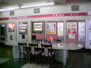 夜になったらふくろうの鳴き声しか聞こえなそうななんか寂しいところだなぁ、潰れたかと思ってもしょうがないでしょう。 自販機類は整然としてて、ちゃんとした物が出てきそう。ここなら落ち着いて自販機フード食ってても寝てても大丈夫ニャリ。