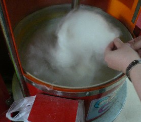 野田市にあるショッピングセンターNOAの3Fのゲームコーナーにある。奥のほうにあり、目立たない場所にある。 筑波山にあったものに、cotton candyのシールがついたタイプ。 綿菓子自販機は、100円を入れるとザラメがグルグル回り、割り箸でわたあめをくっつけていく。 今回はあまりうまくできなかった、できあがった綿菓子はかたまりが多く、ベトついてしまっていた。